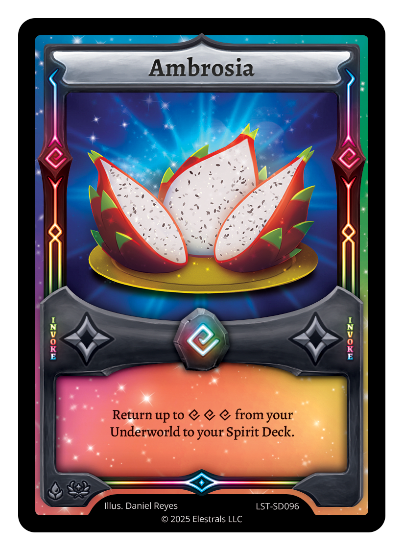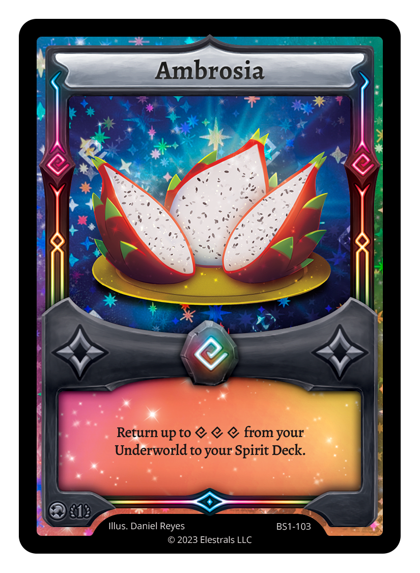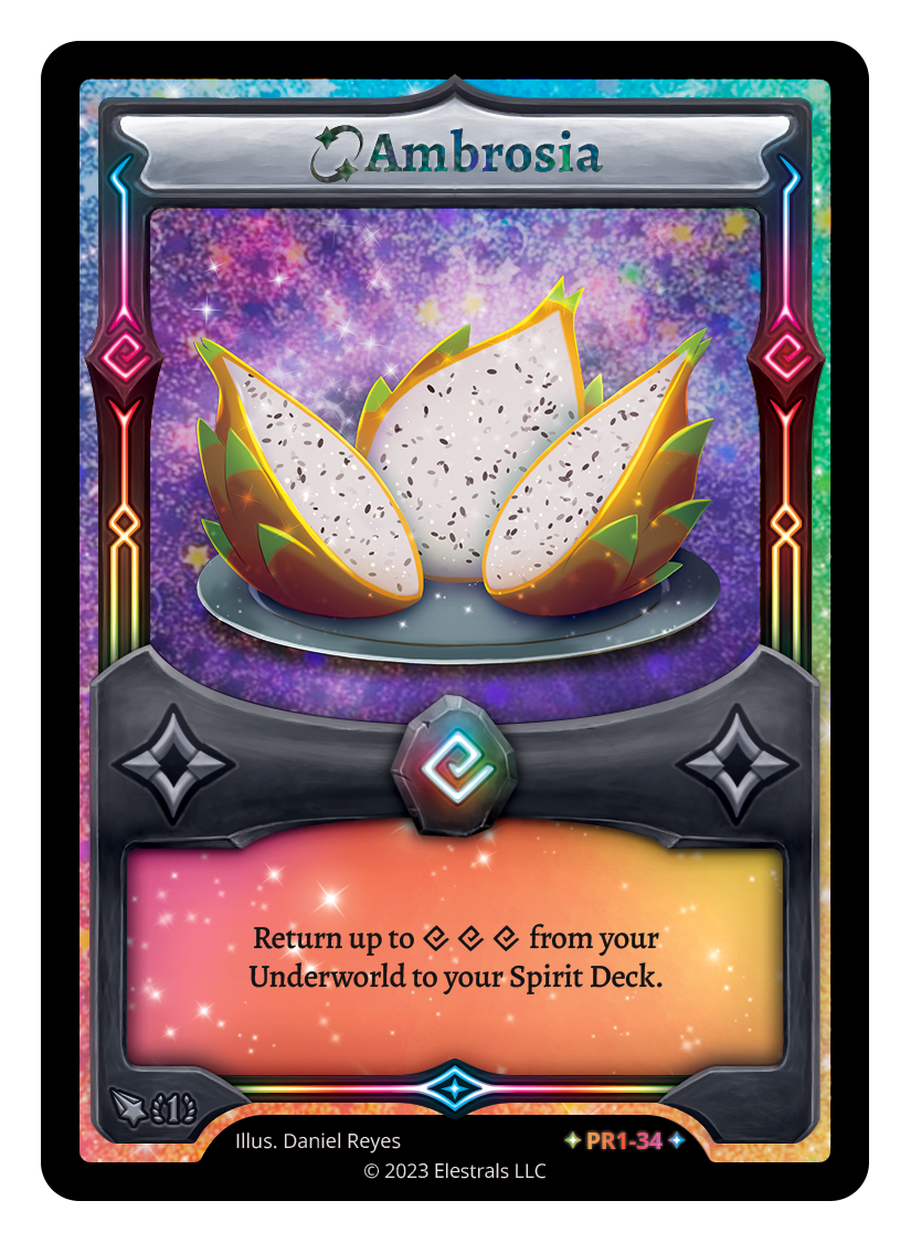 Ambrosia❮❯❮❯❮❯❮❯❮❯❮❯❮❯❮❯❮❯❮❯❮❯❮❯❮❯❮❯❮❯❮❯❮❯❮❯❮❯❮❯❮❯❮❯❮❯❮❯❮❯SD06-14SD04-14SD02-14SD09-14SD01-14SD08-14BS1-103SD01-14SD02-14PR1-34SD04-14SD05-14SD07-14SD05-14SD03-14BS1-103SD03-14MR1-105XX/10FST-SD096TP3-10SD10-15SD11-15SS2-192LST-SD096TypeRuneInvokeCostOmniElementsOmniCard TextReturn up to {XXX} from your Underworld to your Spirit Deck.