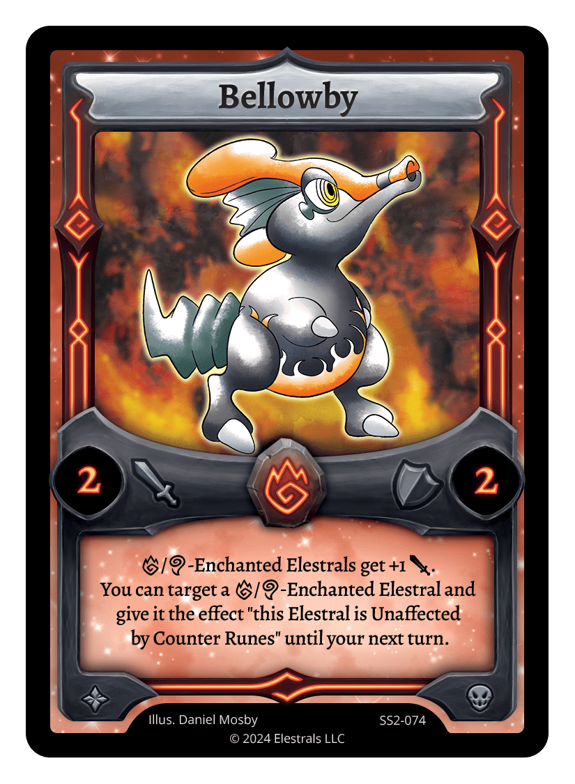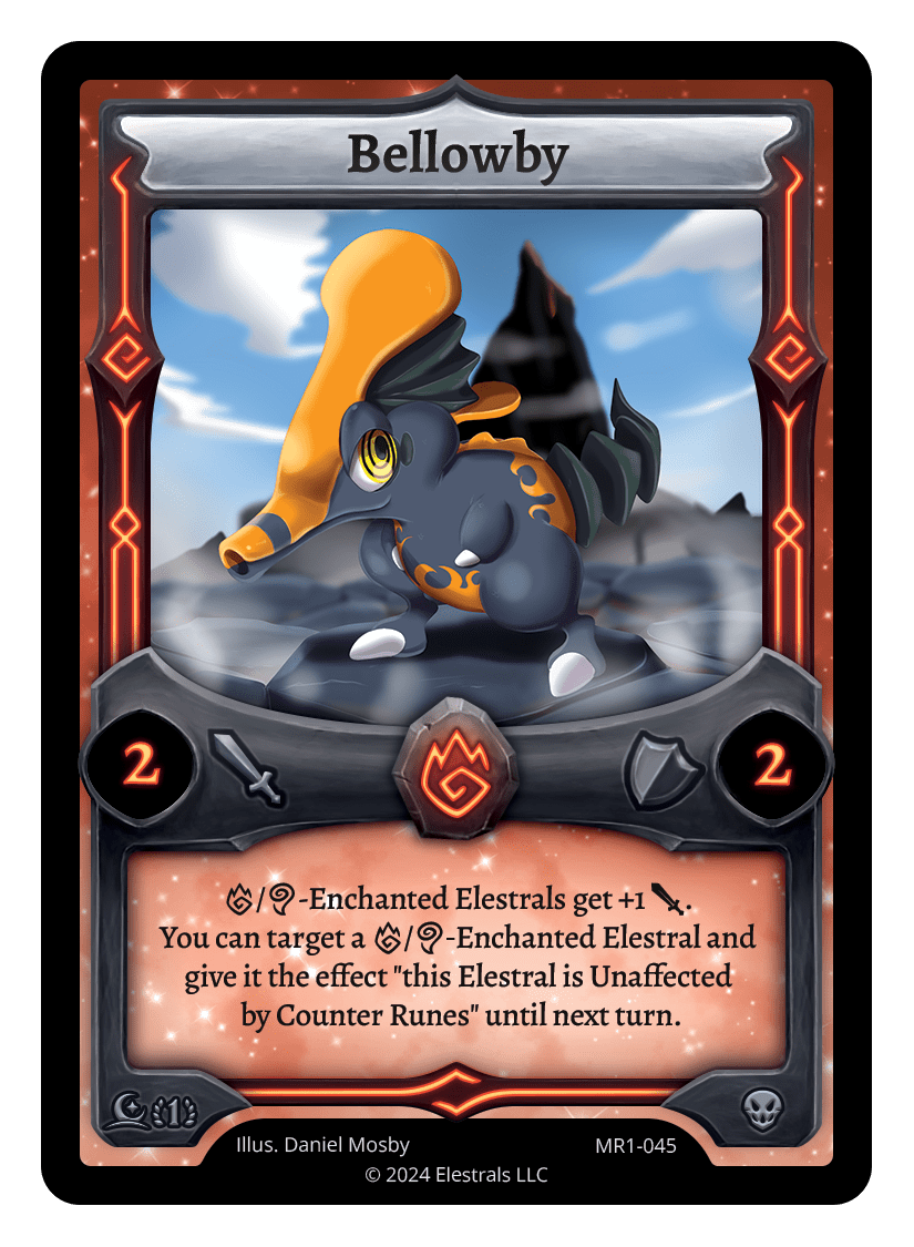 {F}/{A}-Enchanted Elestrals get +1 {J}. You can target a {F}/{A}-Enchanted Elestral and give it the effect "this Elestral is Unaffected by Counter Runes" until next turn.