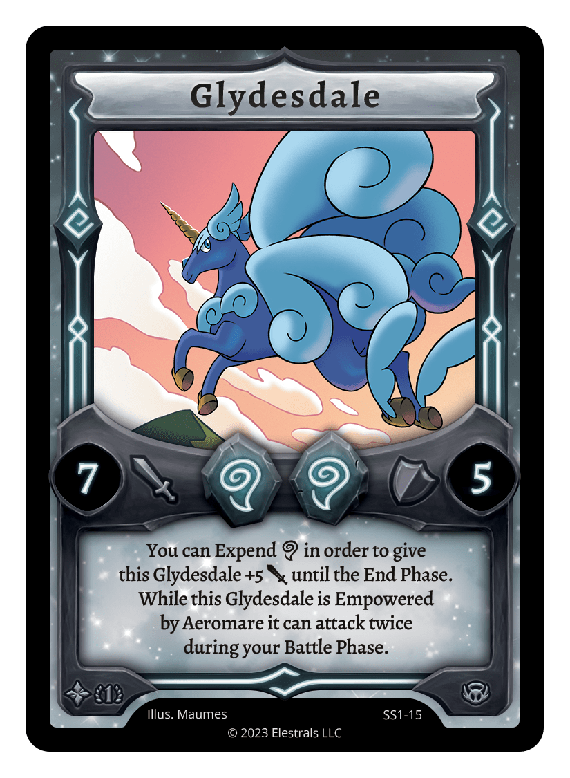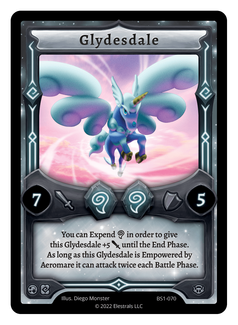 You can Expend {A} in order to give this Glydesdale +5 {J} until the next turn. While this Glydesdale is Empowered by Aeromare it can attack twice during your Battle Phase.
