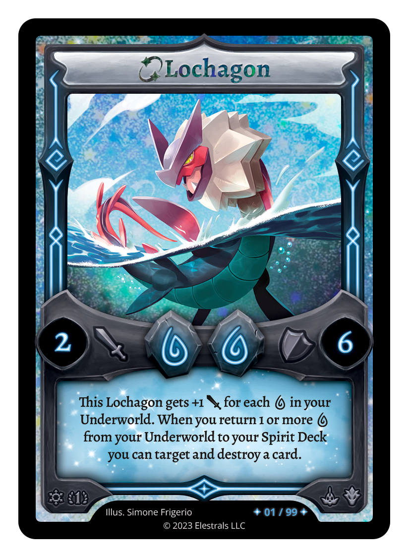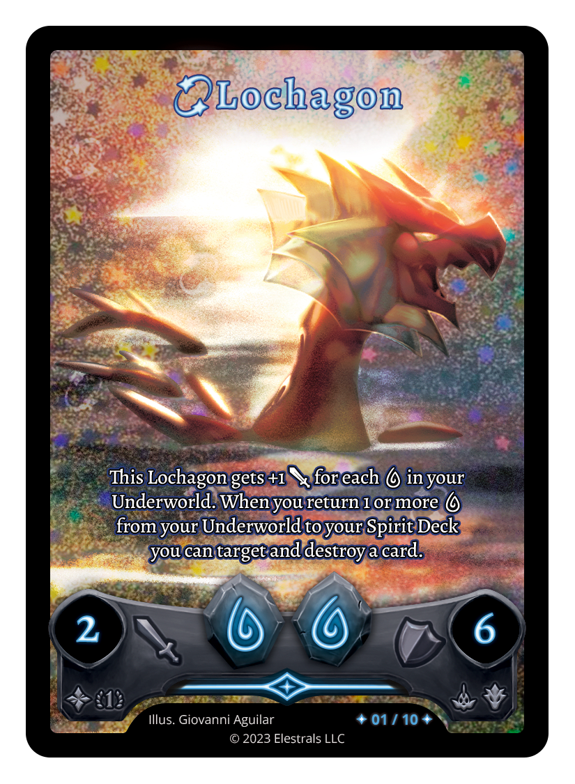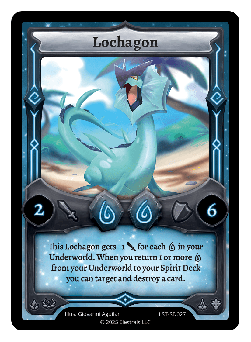 This Lochagon gets +1 {J} for each {W} in your Underworld. When you return 1 or more {W} from your Underworld to your Spirit Deck you can target and destroy a card.