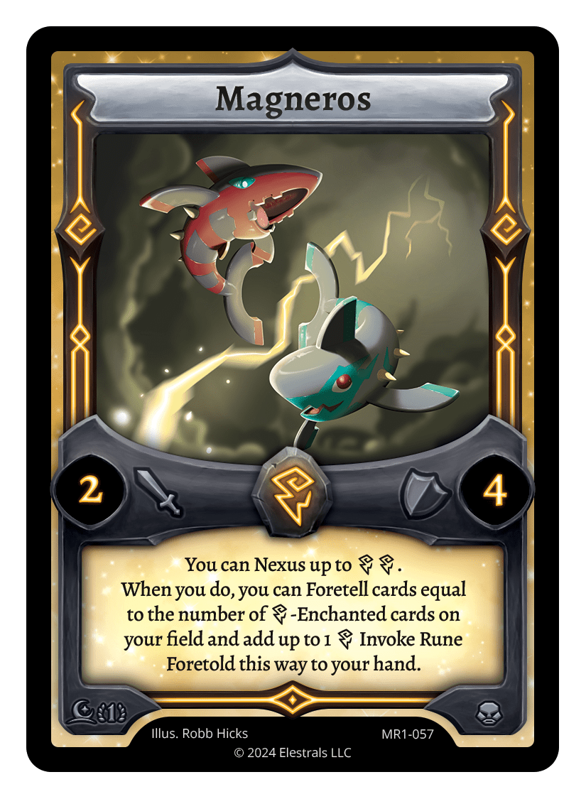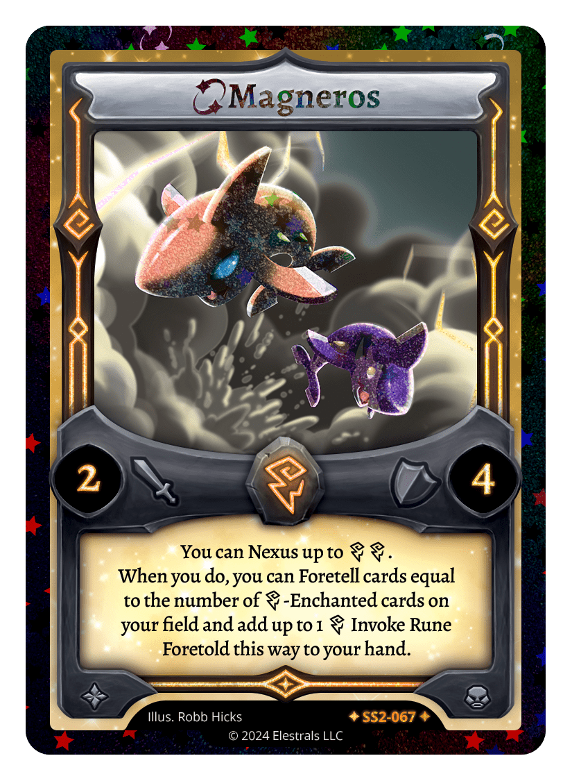 You can Nexus up to {TT}. When you do, you can Foretell cards equal to the number of {T}-Enchanted cards on your field and add 1 {T} Invoke Rune Foretold this way to your hand.
