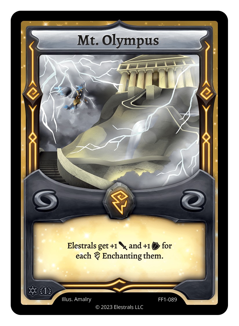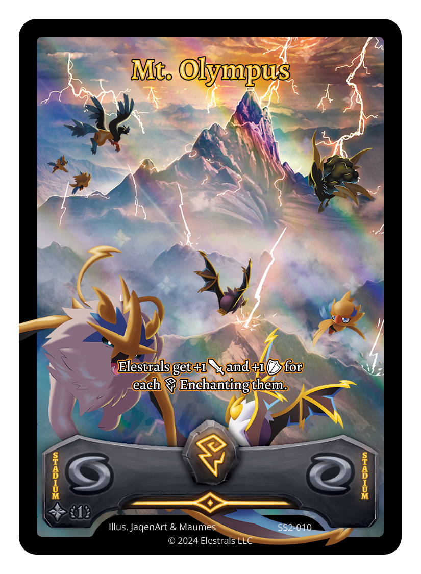 Mt. Olympus❮❯❮❯❮❯❮❯❮❯❮❯❮❯BS1-096BS1-096SD04-17SD04-17FF1-089SS2-010FST-SD082TypeRuneStadiumCostThunderElementsThunderCard TextElestrals get +1 {J} and +1 {O} for each {T} Enchanting them.