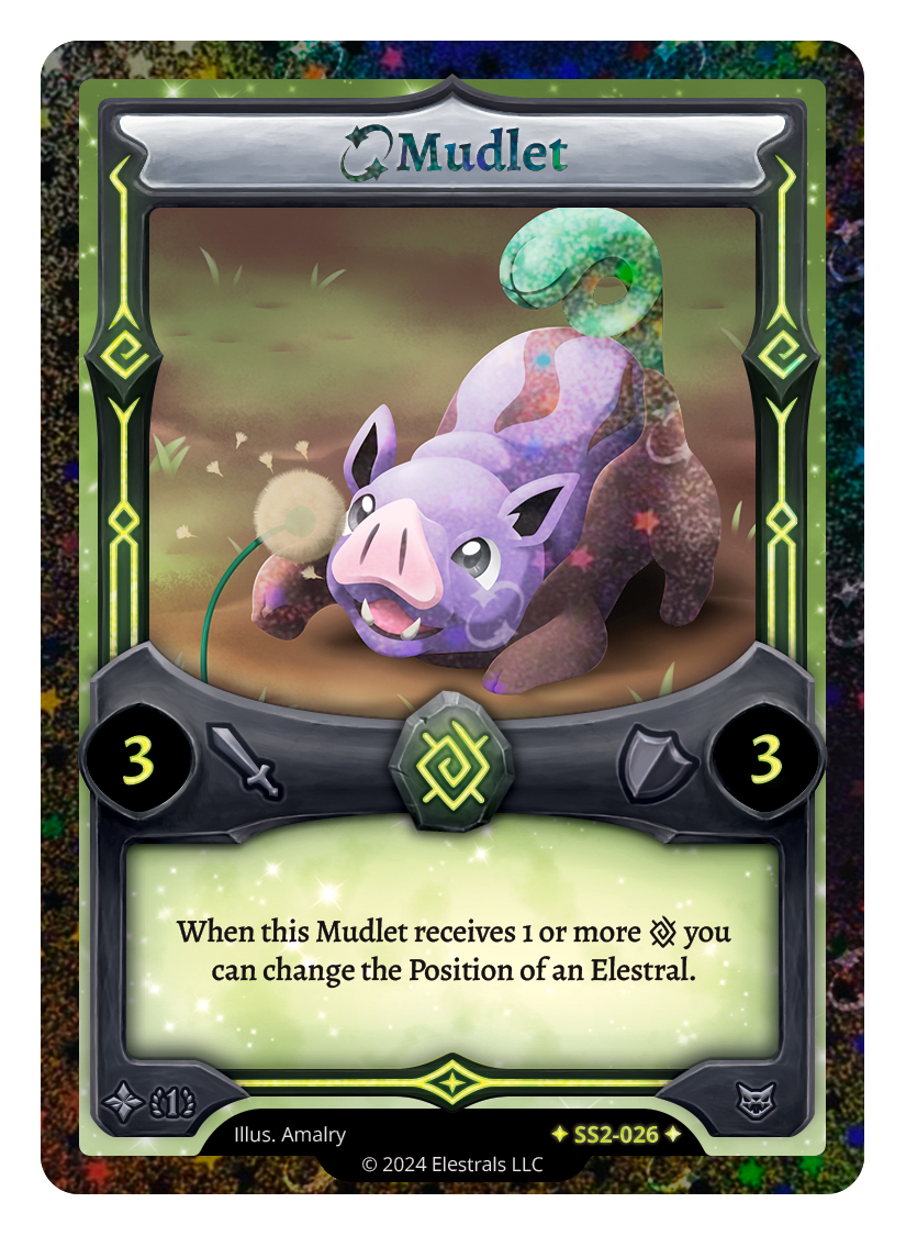 Mudlet❮❯❮❯❮❯DB1-035SS2-018SS2-026TypeElestralCostEarthElementsEarthAttack3Defense3Card TextWhen this Mudlet receives 1 or more {E} you can change the Position of an Elestral.SubclassesBrute