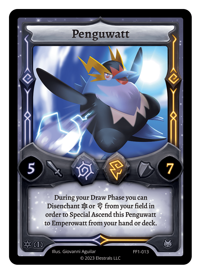 During your Draw Phase you can Discenchant {I}/{T} from your field in order to Special Ascend this Penguwatt to Emperowatt from your hand or deck.