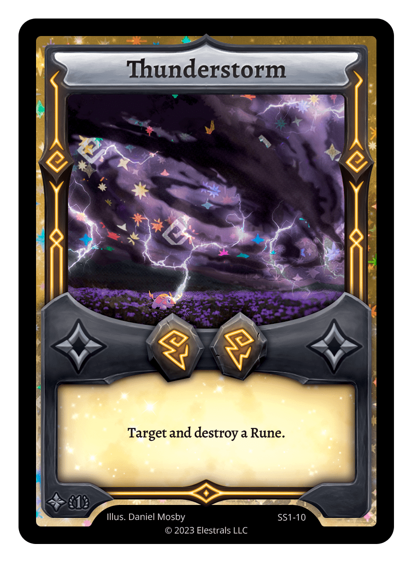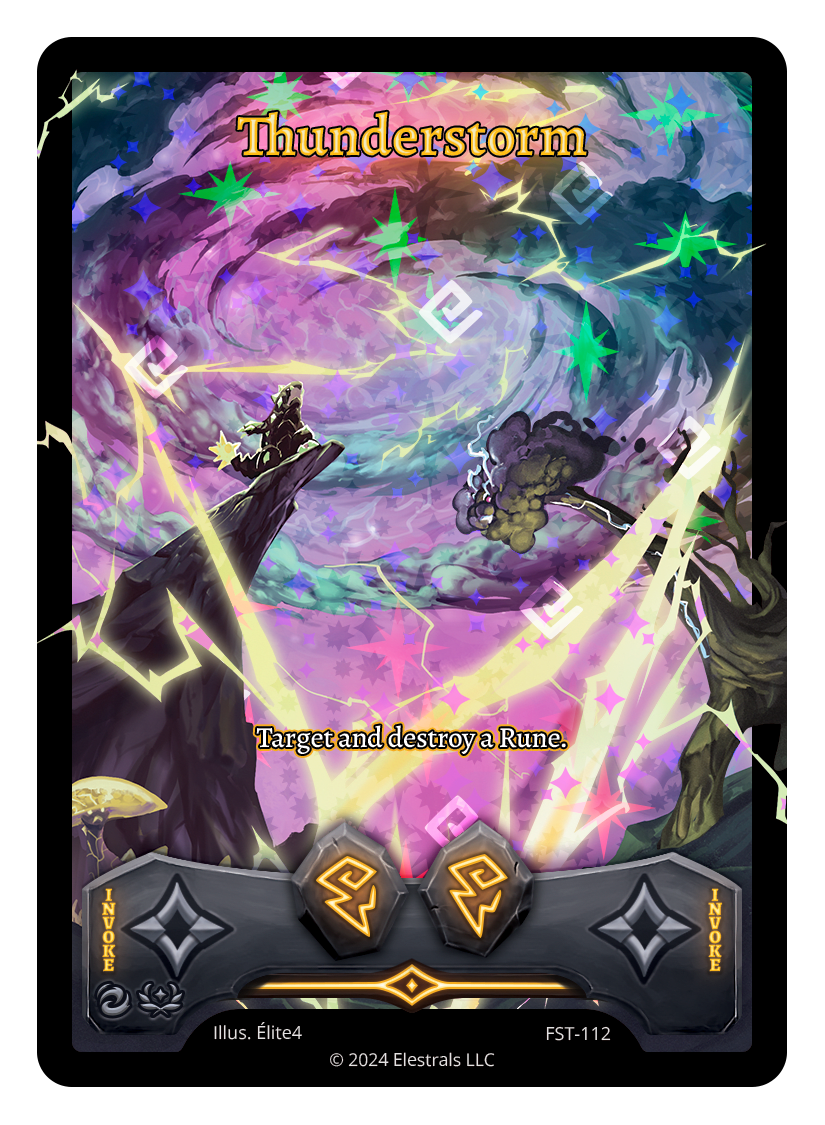 Thunderstorm❮❯❮❯❮❯❮❯❮❯❮❯❮❯❮❯❮❯❮❯❮❯❮❯❮❯SD07-19SD01-21SD05-21BS1-095SD01-21SD05-21SD04-19SD04-19BS1-095SS1-10FST-112FST-SD084LST-SD074TypeRuneInvokeCostThunderThunderElementsThunderCard TextTarget and destroy a Rune.