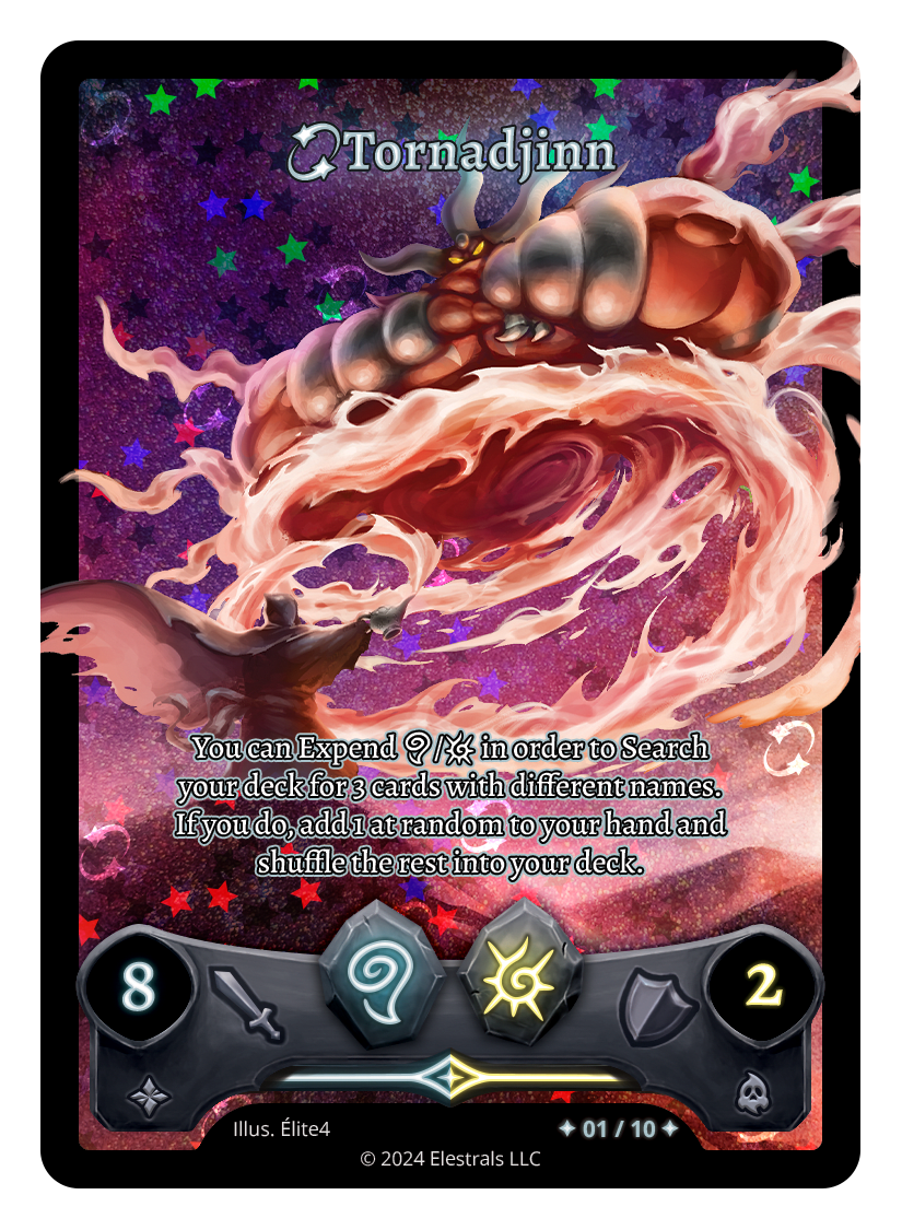 You can Expend {A}/{L} in order to Search your deck for 3 cards with different names. If you do, add 1 at random to your hand and shuffle the rest into your deck.