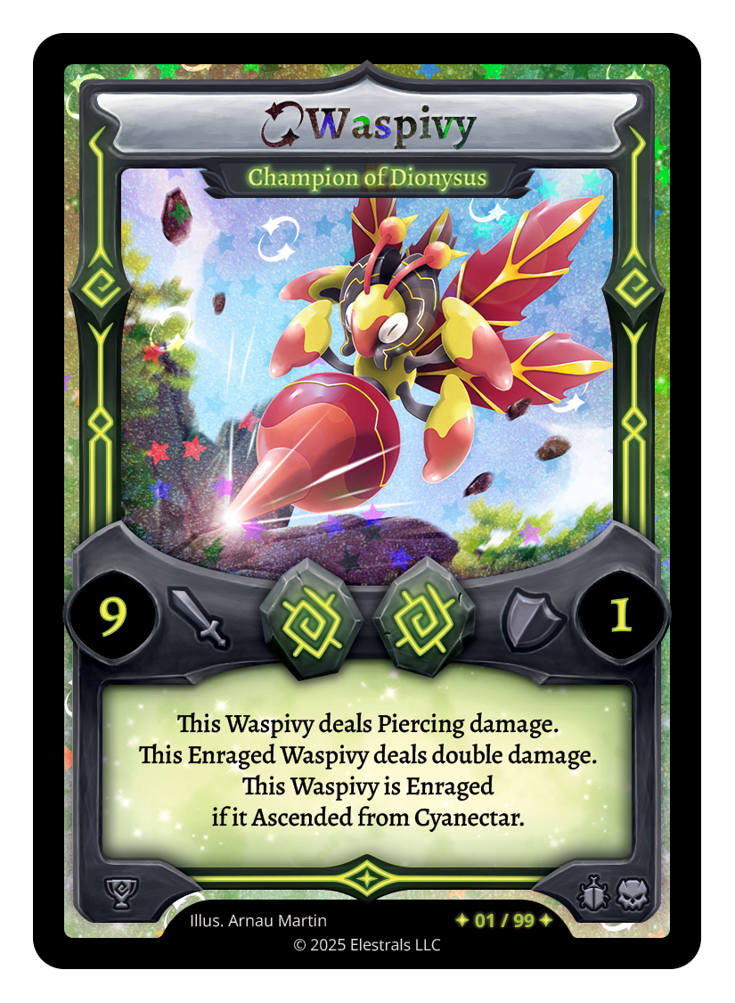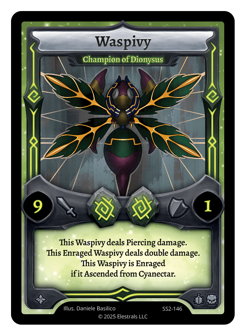 This Waspivy deals Piercing damage. This Enraged Waspivy deals double damage. This Waspivy is Enraged if it Ascended from Cyanectar.